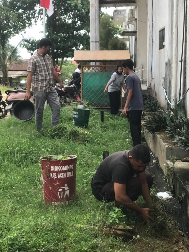 Dikominfo Aceh Timur Laksanakan Gotong Royong untuk Ciptakan Lingkungan Sehat