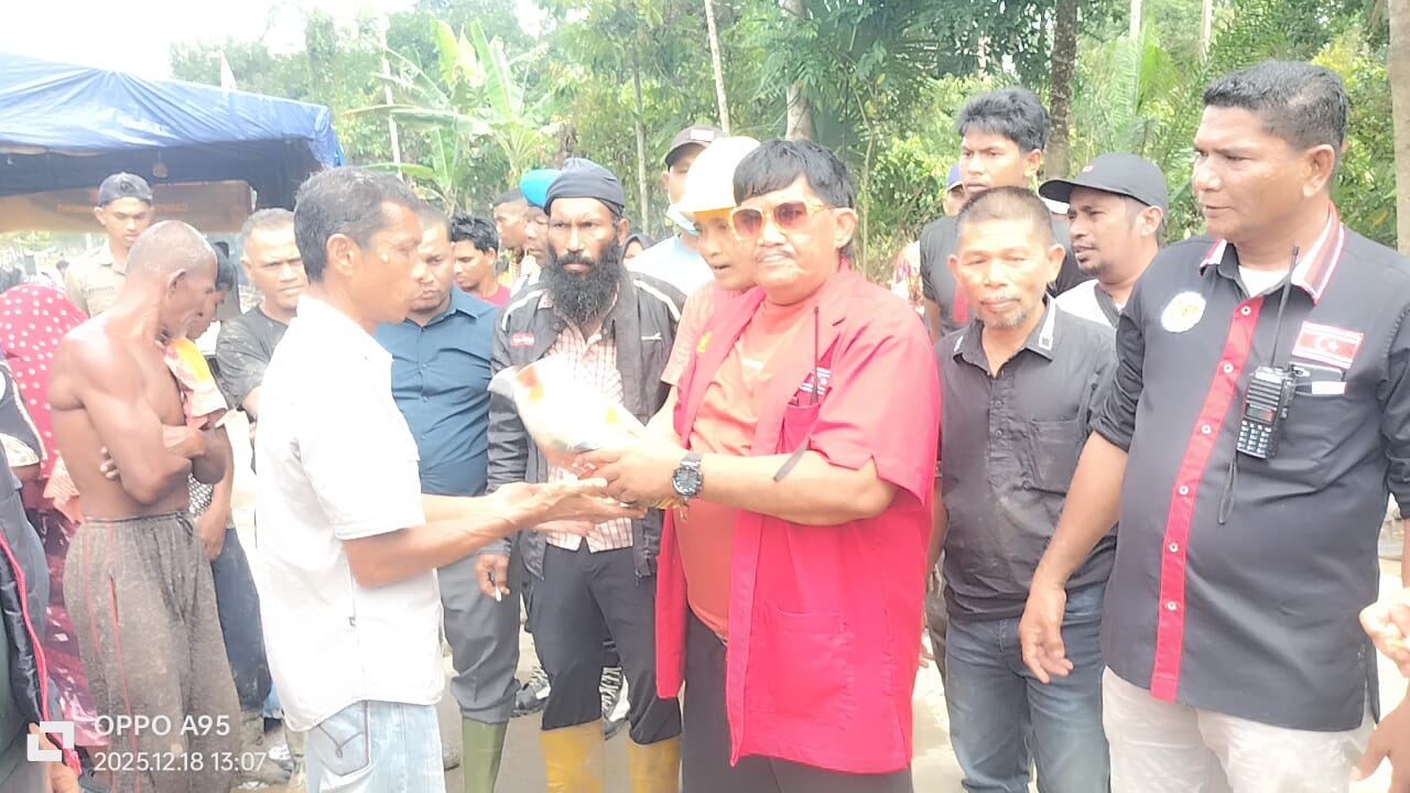 metropesawat.com, ACEH TIMUR – Jajaran GAM Sagoe Meh Ijoe Idi Cut bergerak cepat membantu masyarakat yang terdampak musibah banjir di Aceh Timur. Aksi kemanusiaan ini dipimpin langsung oleh Panglima Sagoe, Tuan Tanah, bersama jajarannya dengan menyasar warga di posko pengungsian, Kamis (18/12/2025).