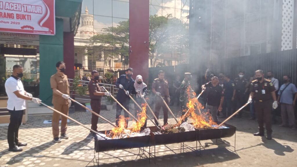 Pemusnahan dilaksanakan berdasarkan Surat Perintah Kepala Kejaksaan Negeri Aceh Timur Nomor: PRINT-365/L.1.22/BPApa.1/12/2025 tanggal 16 Desember 2025, tentang pelaksanaan pemusnahan barang bukti. Kegiatan berlangsung di halaman Kantor Kejaksaan Negeri Aceh Timur dan disaksikan oleh unsur Forum Koordinasi Pimpinan Daerah (Forkopimda) Kabupaten Aceh Timur, perwakilan instansi penegak hukum, Dinas Kesehatan, serta unsur pers dan masyarakat.