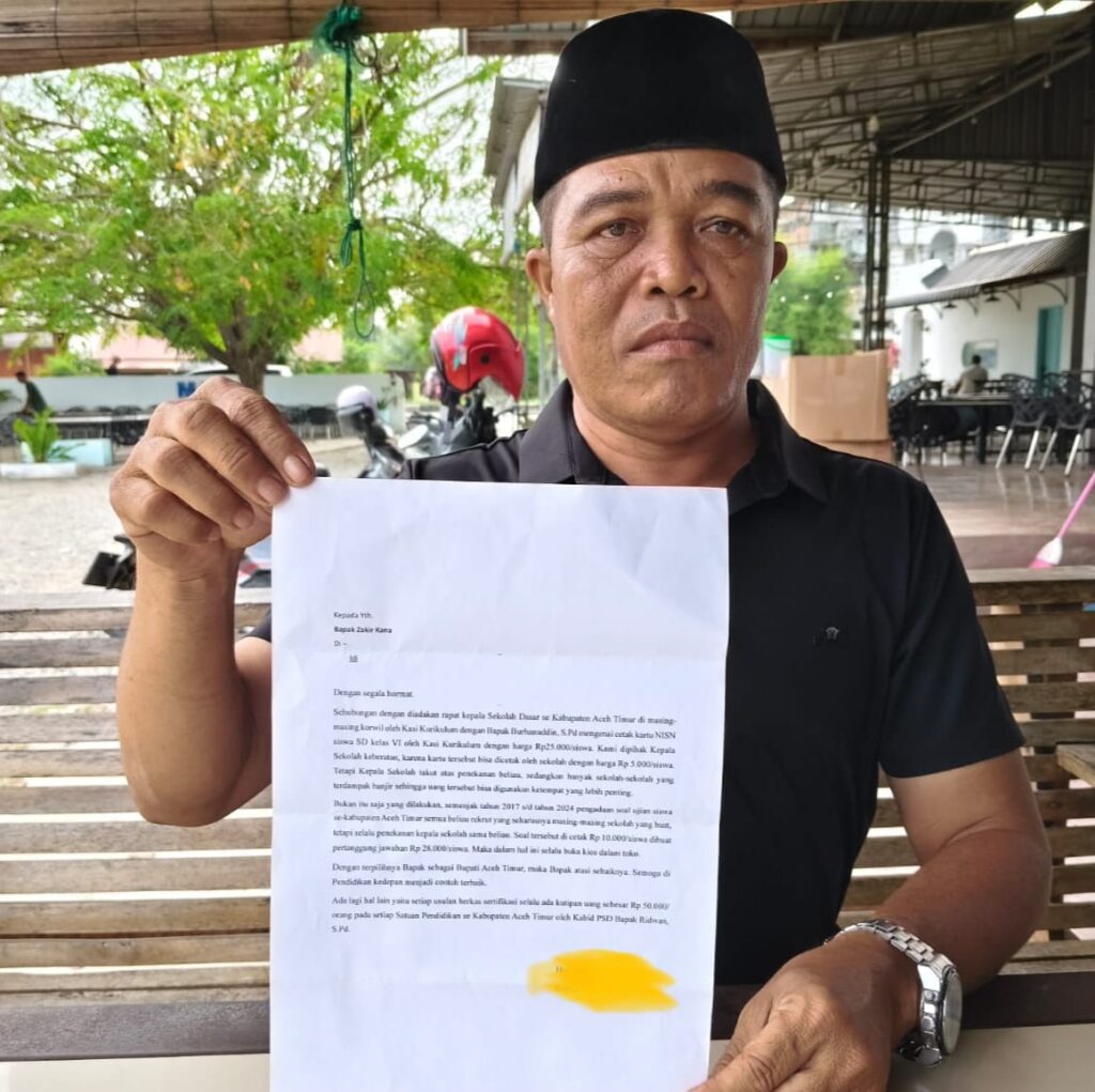 metropesawat.com, ACEH TIMUR – Muzakir, Ketua Lembaga Swadaya Masyarakat (LSM) Komunitas Advokasi Nanggroe Aceh (KANA), menerima Surat Kaleng, Rabu (4/3/2026). Surat kaleng tersebut berisi laporan tentang dugaan penyimpangan dana pendidikan di Kabupaten Aceh Timur.