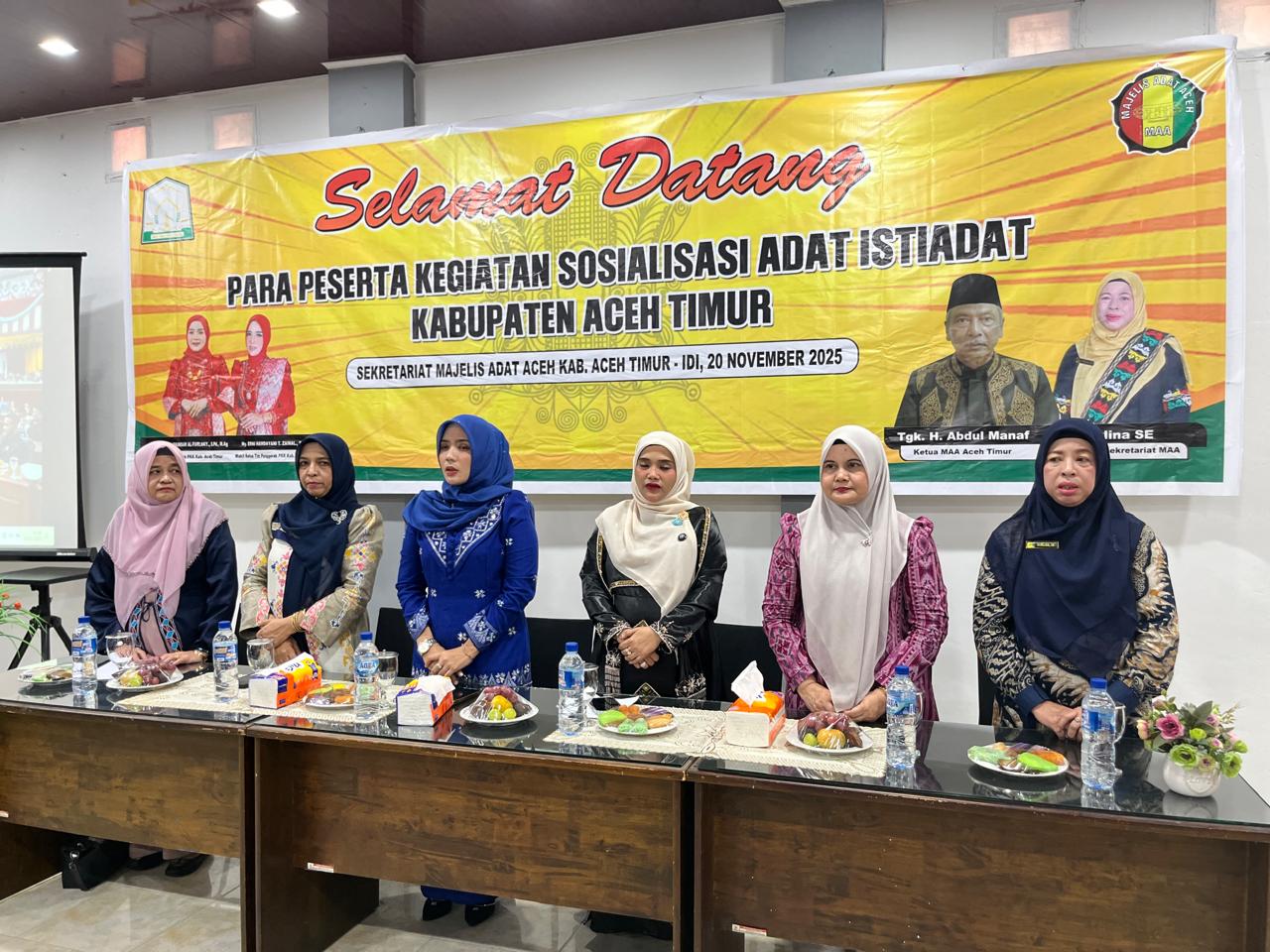 Usai rangkaian sosialisasi, Majelis Adat Aceh (MAA) Aceh Timur juga melaksanakan prosesi peusijuk kepada Istri Bupati dan Istri Wakil Bupati Aceh Timur. Prosesi sakral tersebut disaksikan oleh seluruh peserta dan menjadi momen penuh kekhusyukan yang menggambarkan eratnya hubungan antara adat Aceh, kepemimpinan daerah, dan masyarakat.