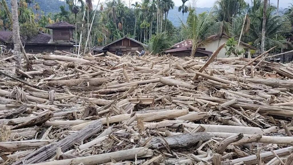 “Pukul 16. 30 WIB, air bah semakin besar dan membawa gelondongan kayu dan mulai naik ke darat menghantam pemukiman penduduk,” ungkap Jamin.
