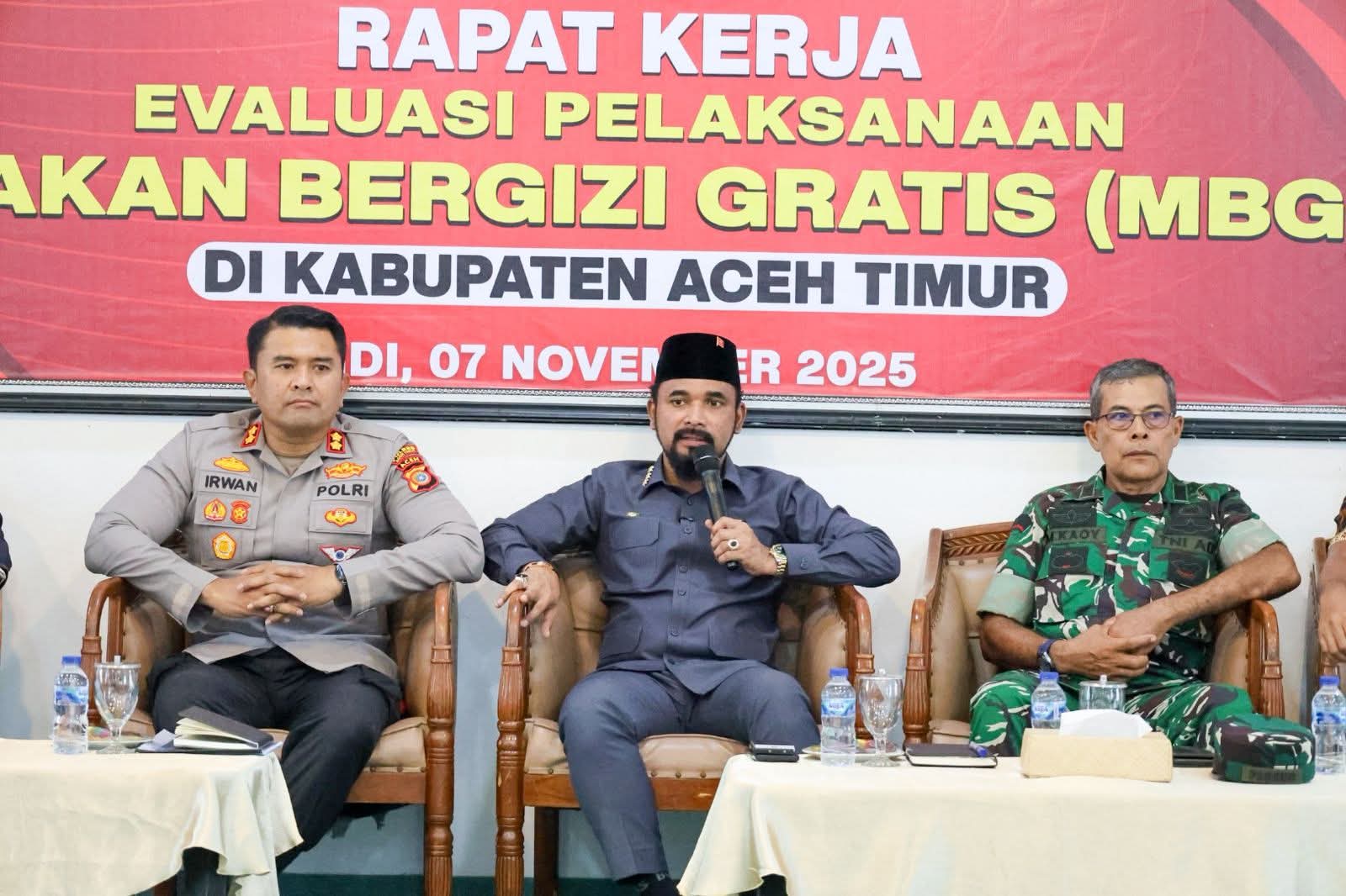 Pemkab Aceh Timur menggelar rapat kerja evaluasi pelaksanaan Program Makan Bergizi Gratis (MBG) sebagai langkah memperkuat pelaksanaan program nasional tersebut di daerah. Rapat ini berlangsung di Aula Serbaguna Idi, Jum'at (7/11/2025).