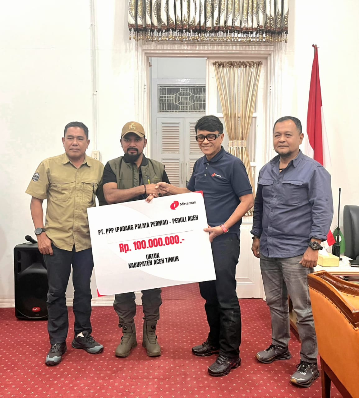 Penyaluran bantuan dilakukan melalui anak usaha Minamas Plantation, PT Padang Palma Permai (PPP), dan diserahkan secara simbolis di Posko Peduli Aceh Timur, Selasa (24/12).