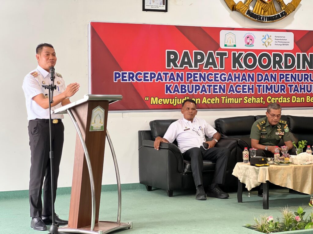 metropesawat.com, Aceh Timur – Bupati Aceh Timur Iskandar Usman Al-Farlaky diwakili Wakil Bupati Teuku Zainal Abidin, membuka acara Pertemuan Koordinasi Tim Percepatan Penurunan Stunting (TPPS) Kabupaten Aceh Timur, di Aula Pendopo Bupati Aceh Timur, Rabu (30/7/2025).