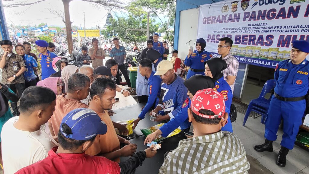 metropesawat.com, BANDA ACEH – Direktorat Polisi Perairan dan Udara (Ditpolairud) Polda Aceh menyalurkan sebanyak 1,2 ton beras murah kepada masyarakat dalam kegiatan Gerakan Pangan Murah (GPM) yang digelar di Kantor Syahbandar Perikanan Lampulo, Kota Banda Aceh, pada Kamis (7/8/2025).
