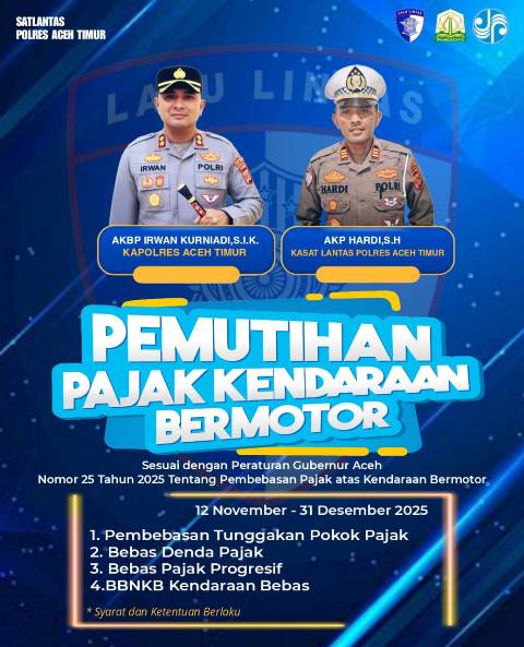AKP Hardi mengimbau agar masyarakat dalam wilayah hukum Polres Aceh Timur segera memanfaatkan program pemutihan pajak ini yang berlaku hingga akhir tahun 2025 nanti.