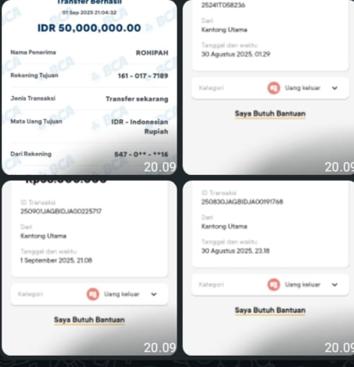 Selanjutnya 1 September 2025 oknum lapas kembali meminta ditransfer ke BRI 76450134XXXXX RP. 58 juta dan ke rekening BCA sebesar RP.50 juta dengan total transfer Rp.225 juta.