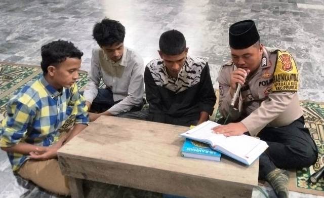 metropesawat.com, ACEH TIMUR – Usai pelaksanaan Sholat Tarawih pada Rabu (11/03/2026) malam, Bhabinkamtibmas Polsek Peureulak, Polres Aceh Timur, Polda Aceh, Bripka Jupriadi, bergabung dengan para remaja yang melaksanakan tadarus Al-Qur’an di Meunasah Desa Lhok Dalam, Kecamatan Peureulak.