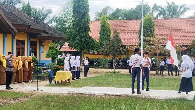 metropesawat.com, ACEH TIMUR – Kapolsek Julok, Polres Aceh Timur, Polda Aceh AKP Rudi Kristanto melalui Wakapolsek Ipd Yusni, S.H. melaksanakan kegiatan “Saweu Sikula” dengan mengunjungi SMPN 2 Julok dan menjadi Pembina upacara pengibaran bendera pada Senin, (20/10/2025) pagi.