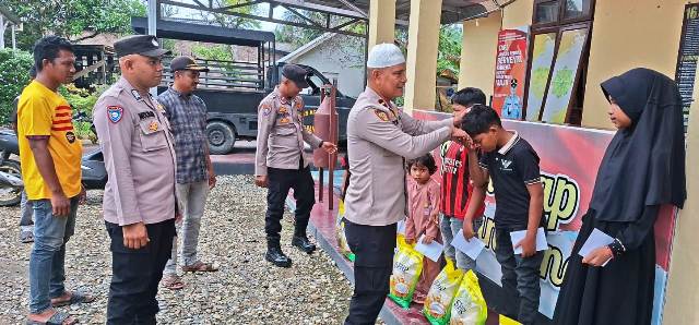 Santunan berupa 1 (satu) sak Beras SPHP 5 Kg dan uang tunai.disalurkan kepada anak yatim piatu dan kaum dhuafa oleh Kapolsek Pantee Bidari dan anggotanya.