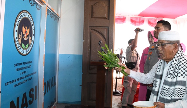 metropesawat.com, ACEH TIMUR – Satuan Pelayanan Pemenuhan Gizi (SPPG) Yayasan Kemala Bhayangkari (YKB) Polres Aceh Timur yang berloaksi di Desa Blang Pauh Sa, Kecamatan Julok, Kabupaten Aceh Timur pada, Kamis, (02/10/2025) siang dipeusijuk oleh Pimpinan Dayah Darul ‘Atiq Tgk. H. Idris A. Jalil (Abu Julok).