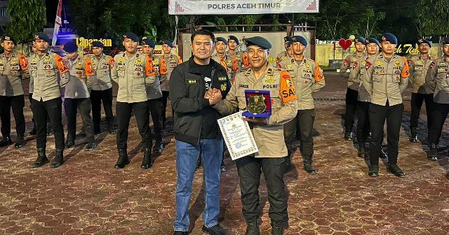 Saat melepas personel BKO Brimob, Kapolres menyampaikan ucapan terima kasih atas dukungan penanganan pascabencana di wilayah hukum Polres Aceh Timur.