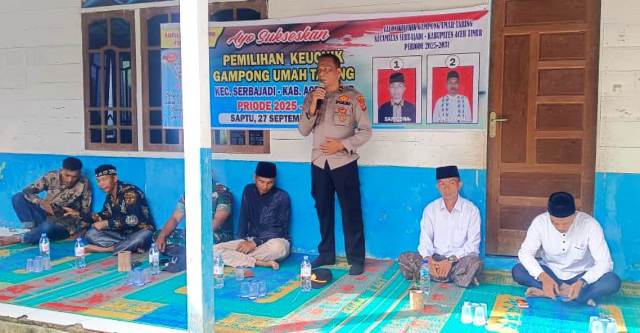 metropesawat.com, ACEH TIMUR – Kapospolsubsektor Lokop, Polsek Serbajadi, Polres Aceh Timur, Polda Aceh, Ipda Suhirman, S.H. bersama unsur Muspika Kecamatan Serbajadi memantau langsung proses pemilihan Geuchik Definitif Gampong Umah Taring pada Sabtu, (27/09/2025).