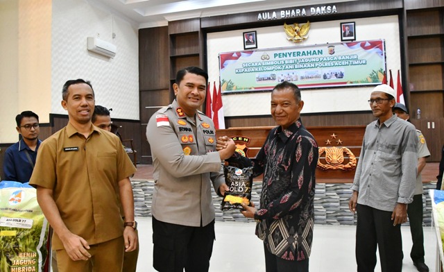 metropesawat.com, ACEH TIMUR – Kepolisian Resor Aceh Timur, Polda Aceh menyalurkan bantuan bibit jagung kepada kelompok tani binaan sebagai bagian dari upaya pemulihan sektor pertanian pascabanjir. Bantuan tersebut diserahkan secara simbolis oleh Kapolres Aceh Timur, AKBP Irwan Kurniadi, S.I.K. di Aula Bhara Daksa, Senin (13/04/2026) pagi.