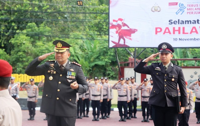 metropesawat.com, ACEH TIMUR – Kepala Kepolisian Resor Aceh Timur, Polda Aceh, AKBP Irwan Kurniadi, S.I.K. memimpin upacara memperingati Hari Pahlawan Nasional di Lapangan Apel Sarja Arya Racana, Senin, (10/11/2025) pagi.